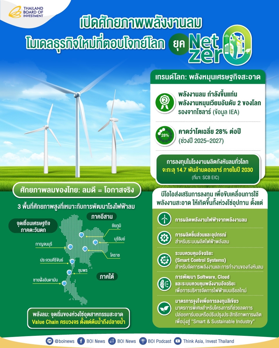 โลกกำลังขยับเข้าสู่ยุค Net Zero Economy พลังงานสะอาดเป็นเหมือน “ใบเบิกทางใหม่” สู่การแข่งขันระหว่างประเทศ และหนึ่งในพลังที่เติบโตเร็วที่สุดรองจากโซลาร์ คือ พลังงานลม